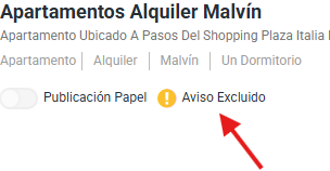 En caso de que figure, hace clic en el logo en color rojo, allí encontrarás la información que debes modificar para que tu aviso no esté más excluido. Una vez hayas modificado esto, te solicitamos que te comuniques al 131 opción 2 para desbloquearlo. Horario de Atención de Lunes a Viernes de 8 a 20 horas.