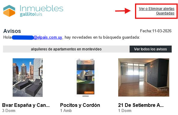 Si no quieres recibir más notificaciones en tu correo electrónico, sobre una alerta que hayas guardado, sigue los siguientes pasos: