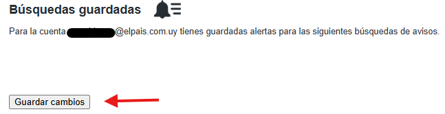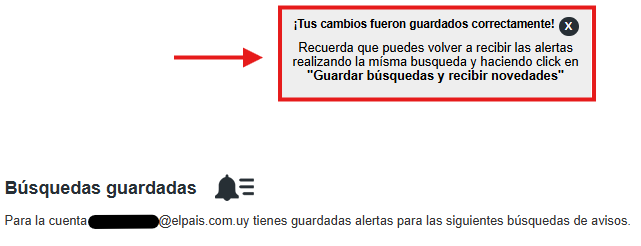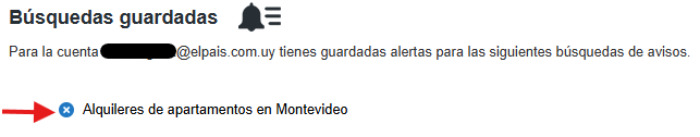 Te llevará a tus búsquedas guardadas, para eliminar la que desees hace click en el botón